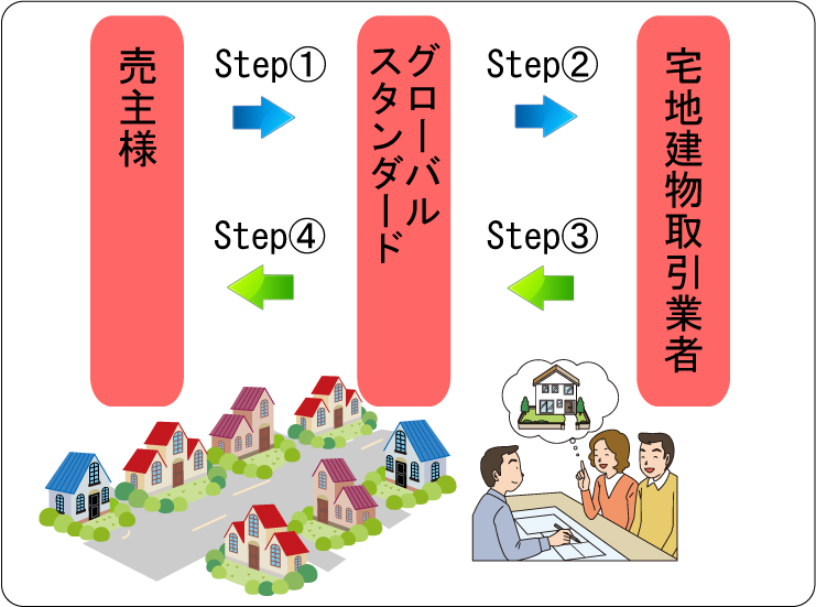 一般のお客様への紹介だけでなく、売主様のご希望や不動産の状況に応じてグローバルスタンダード(GS)取引先の宅地建物取引業者に紹介し、オークション形式で高値で早期売却を目指すものです。